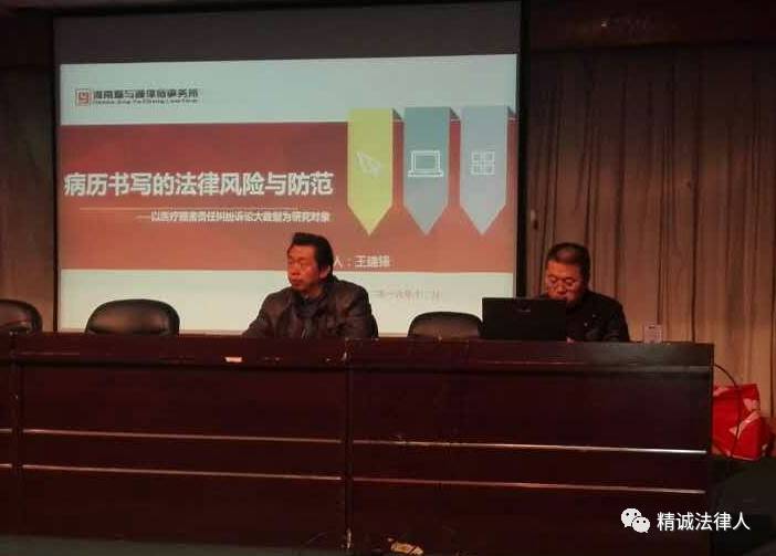 2016年12月16日,河南精与诚律师事务所精诚法务通首席研究员王建锋,应邀到河南义煤总医院开展专题讲座,讲座的主题为《病历书写的法律风险与防范--以医疗损害赔偿责任纠纷诉讼大数据为研究对象》。医院班子成员和全体医护人员参加了普法讲座,河南电视台映象网对讲座进行了全程录相。