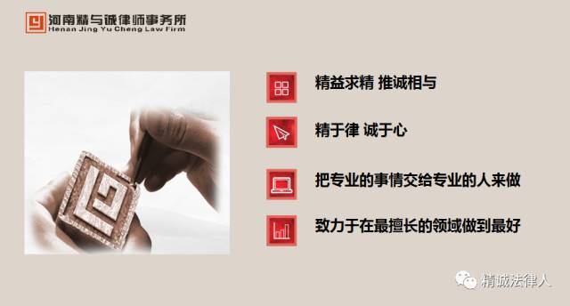 河南精与诚律师事务所,是一家专注于民商事法律服务的专业化、品牌化、公司化运营的律师事务所。其秉承“精益求精,推诚相与”的核心价值观,致力于在最擅长的领域做到最好,努力为客户提供专业、全面、务实的法律及商务解决方案。